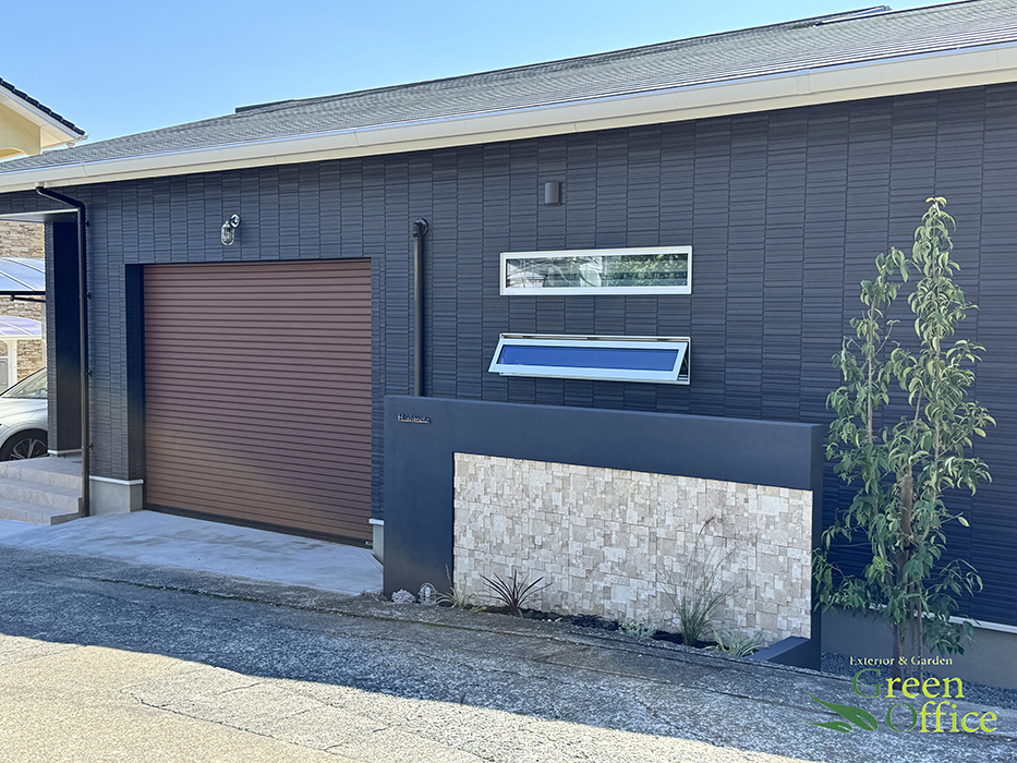 エクステリアは北側道路で建物との距離が近く、インナーガレージのある住宅であったので、オープン外構での計画になりました。