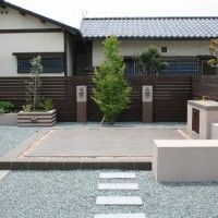 K様邸 - 熊本市 Exterior&garden クローズドの外構です。 タイル貼りの重厚感ある外観に合わせたエクステリアとしました。 門廻りに花壇と花台を造る事で閉塞感を和らげる効果を出しています。 ガーデンは使用目的に合わせて、テーマ分けしました。 シンクとベンチを造ったリビングスペース。床のタイルはあえて段差をつけステージ上にし立体的に造りました。 芝生を貼った遊びのスペース、花壇を散策できるようなスペースと、贅沢な空間となりました。 次の施工例» «前の施工例 一覧へ戻る